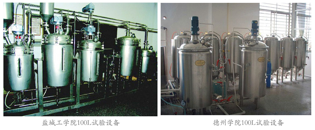 - HLS系列学校啤酒实验设备,主要包括糖化部分和发酵部分,二者通过综合管道接通,其系统配置全面,设备技能先进,操作灵活,安全稳定,满足大专院校啤酒生产、教学要求,也可以根据用户需要进行设计。 糖化部分由糊化锅、糖化锅、过滤槽、煮沸锅、漩沉槽和换热器构成,并且各部件之间通过管道接通,糊化锅和糖化锅连接有原料输入管道;发酵部分由6-8个发酵罐构成,发酵罐之间连接有洗涤杀菌管道、物料管道、冷媒回流管道和CO2管道。