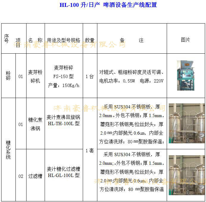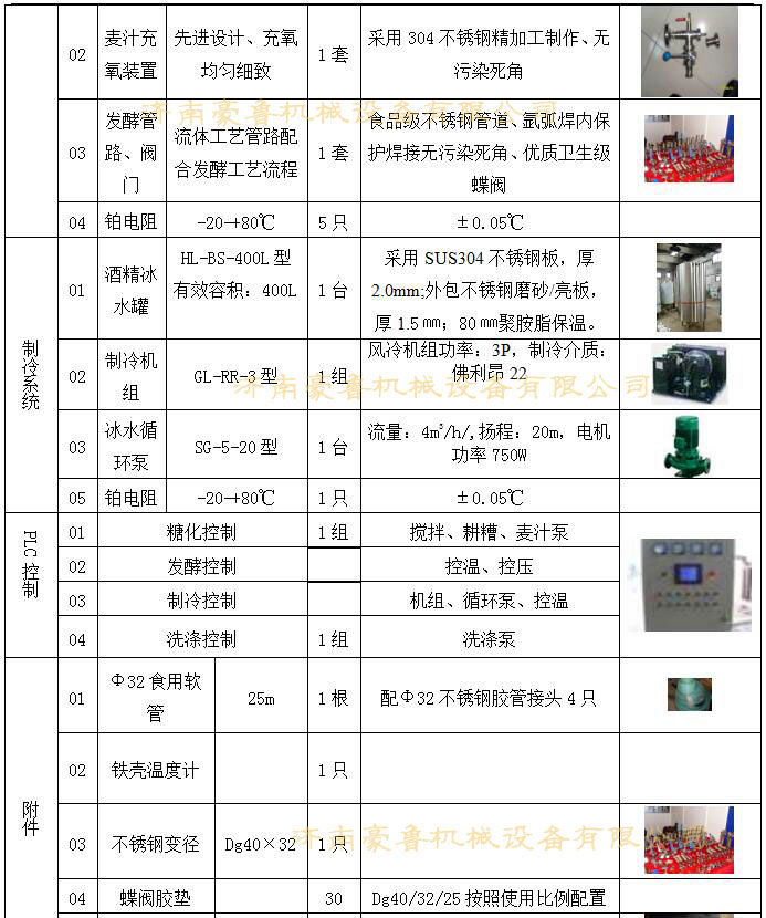 - HLS系列学校啤酒实验设备,主要包括糖化部分和发酵部分,二者通过综合管道接通,其系统配置全面,设备技能先进,操作灵活,安全稳定,满足大专院校啤酒生产、教学要求,也可以根据用户需要进行设计。 糖化部分由糊化锅、糖化锅、过滤槽、煮沸锅、漩沉槽和换热器构成,并且各部件之间通过管道接通,糊化锅和糖化锅连接有原料输入管道;发酵部分由6-8个发酵罐构成,发酵罐之间连接有洗涤杀菌管道、物料管道、冷媒回流管道和CO2管道。